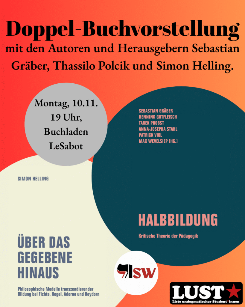 Mehr zu den Büchern auf: https://www.verbrecherverlag.de/shop/halbbildung-kritische-theorie-der-paedagogik/ & https://www.verbrecherverlag.de/shop/ueber-das-gegebene-hinaus-philosophische-modelle-transzendierender-bildung-bei-fichte-hegel-adorno-und-heydorn/