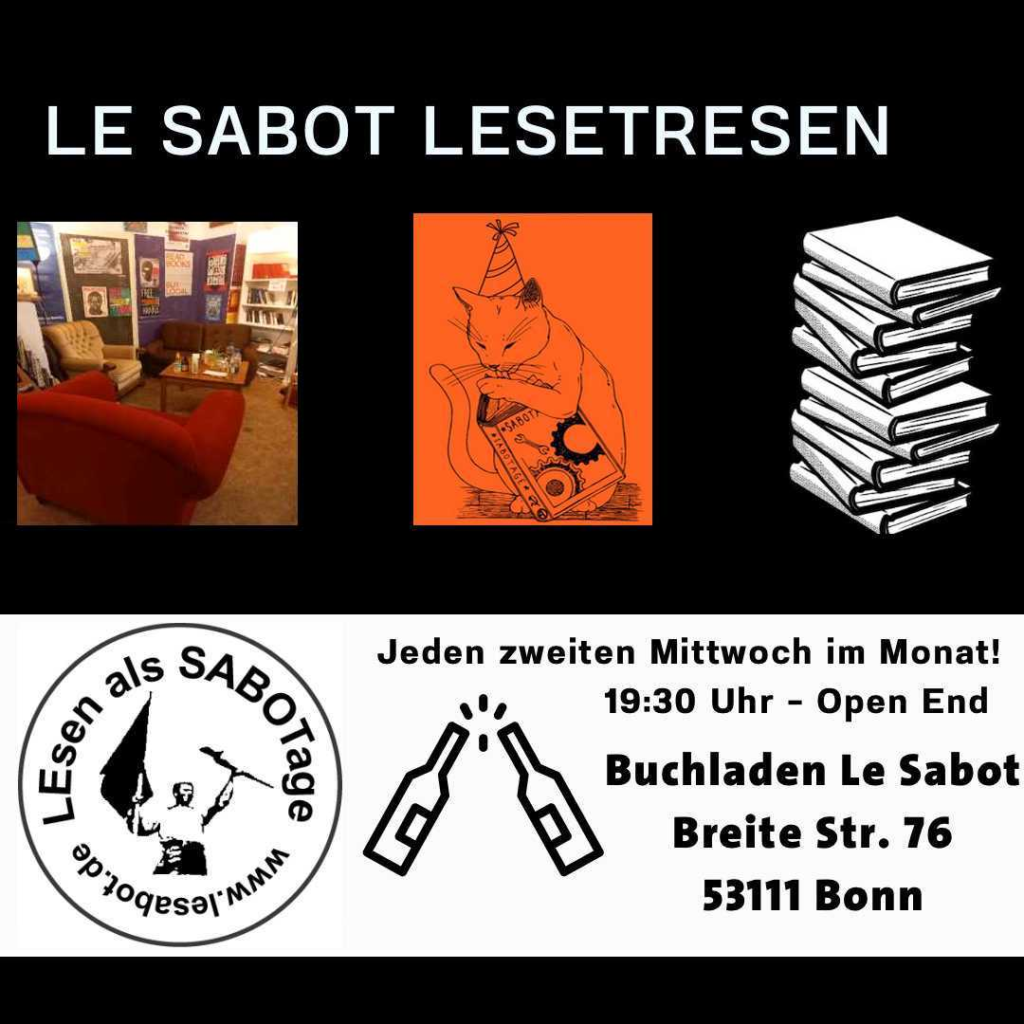 Jeden zweiten Mittwoch im Monat lädt der Buchladen Le Sabot euch ein, jenseits der Öffnungszeiten in den Laden zu kommen, zu stöbern, etwas zu lesen oder in netter Gesellschaft ein Kaltgetränk zu genießen.