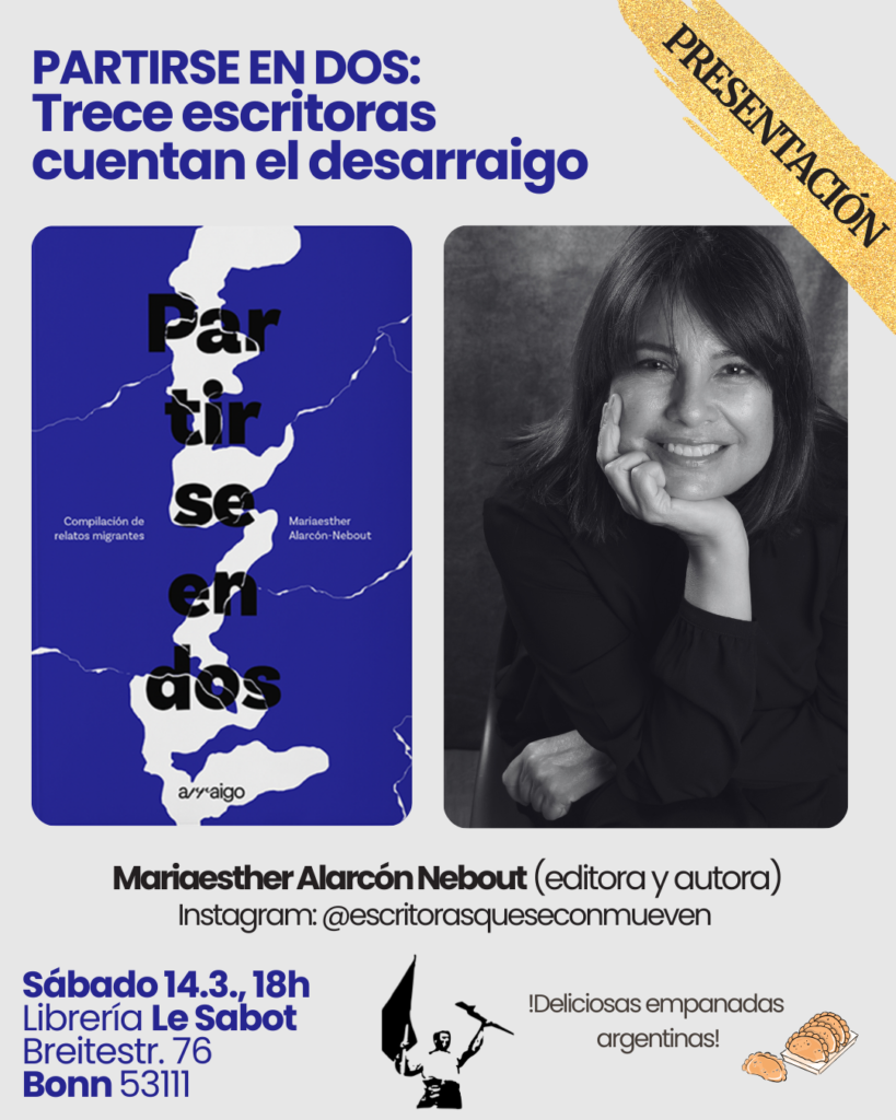Sábado, 14 de marzo de 2026, 18:00 h: Presentación del libro „Partirse en Dos: compilación de relatos migrantes” con Dr. Lía Durán y Dr. Nàdia Villacampa