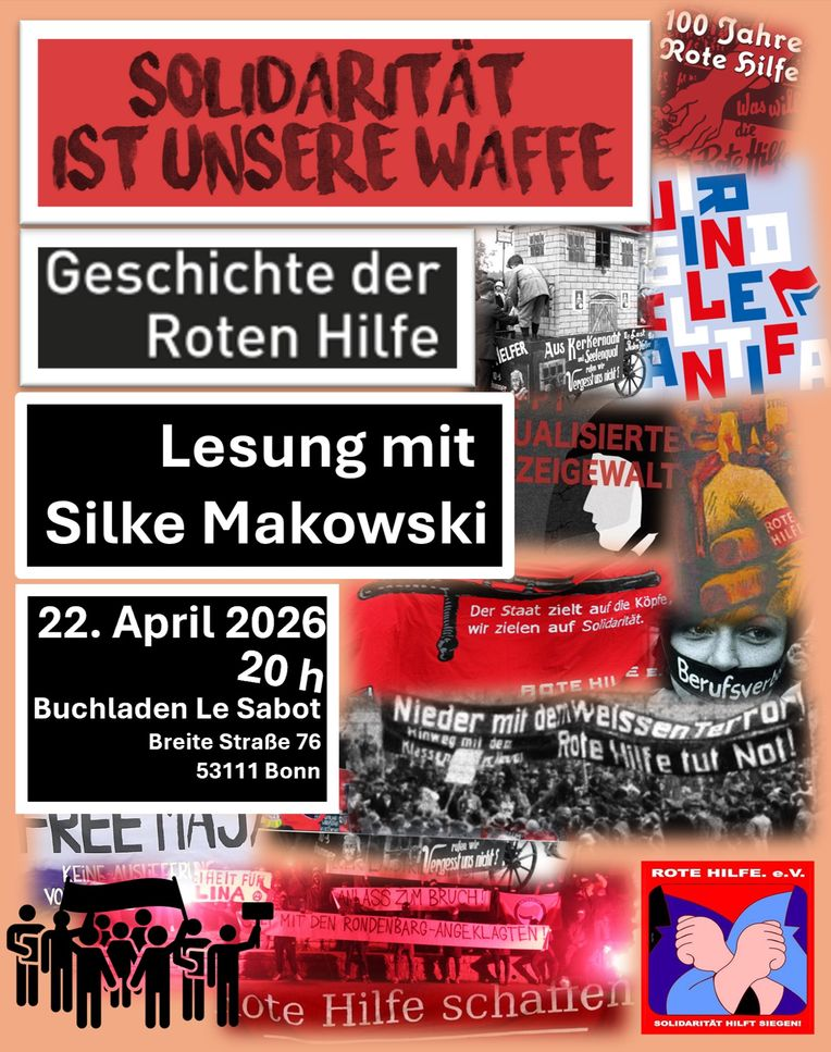 Mittwoch, 22. April 2026, 20:00 Uhr: „Geschichte der Roten Hilfe“ – Buchvorstellung mit Silke Makowski